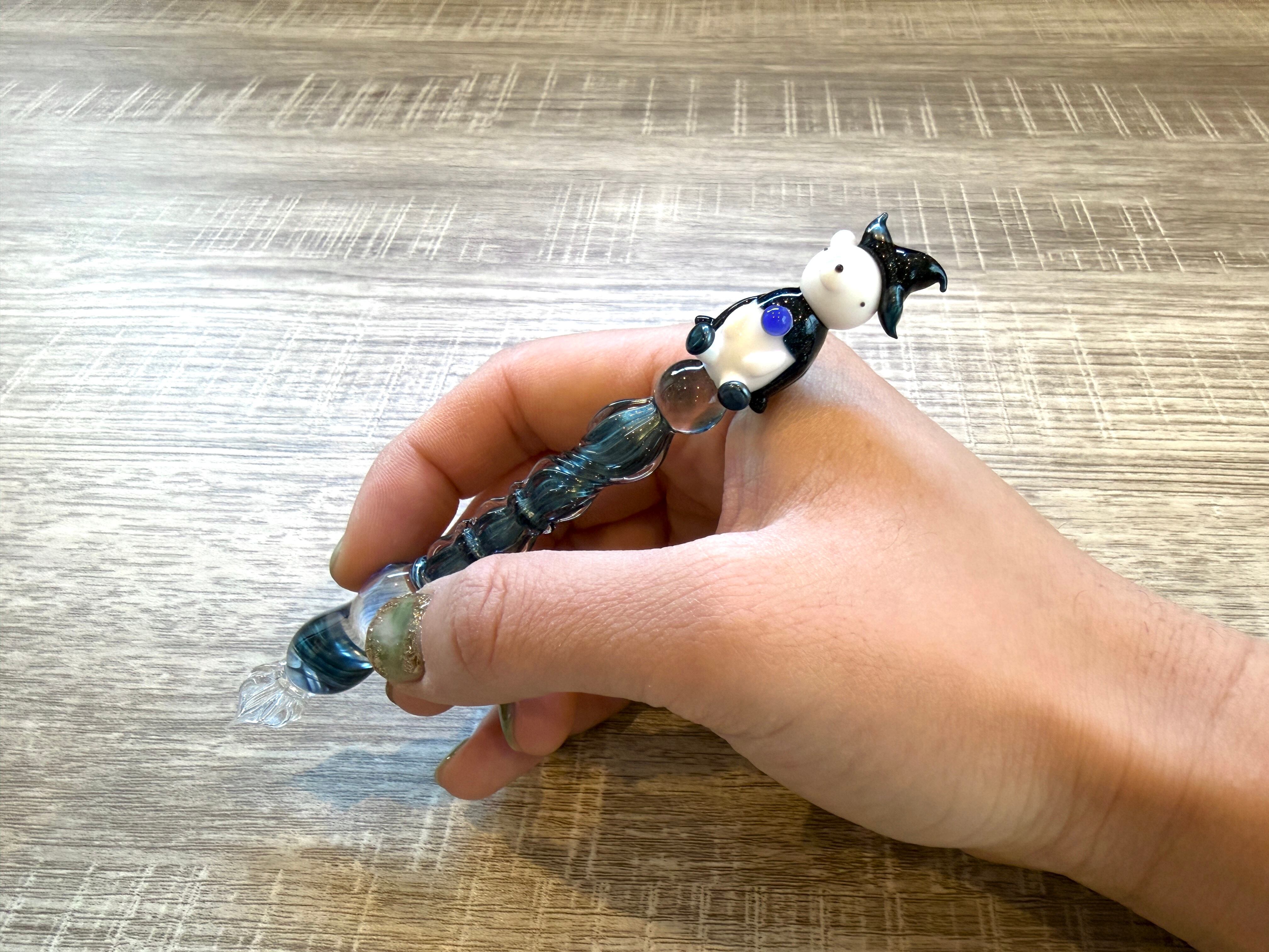 手作りの動物のガラス細工をペン軸に載せたガラスペンです!