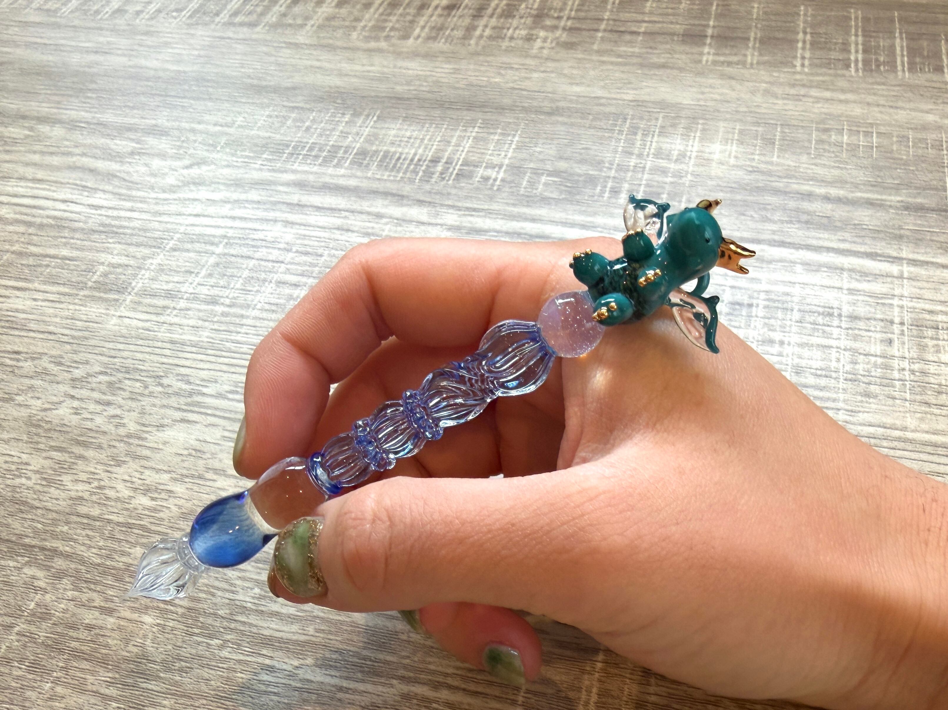 手作りの動物のガラス細工をペン軸に載せたガラスペンです!