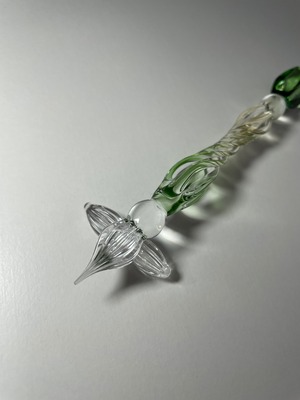 制作にはボロシリケイトガラスという理化学用の試験管などに使用されている特殊な硬質ガラスを使用しています。また、型は一切使用せずに、工房にて2000℃を超える酸素バーナーの炎でガラスを溶かして1つ1つ丁寧に心を込めて、手作業で制作しています。お客様のご覧になられる環境により作品のお色味が少し変化してしまう場合が稀にございますがご了承下さいますようよろしくお願いします。
